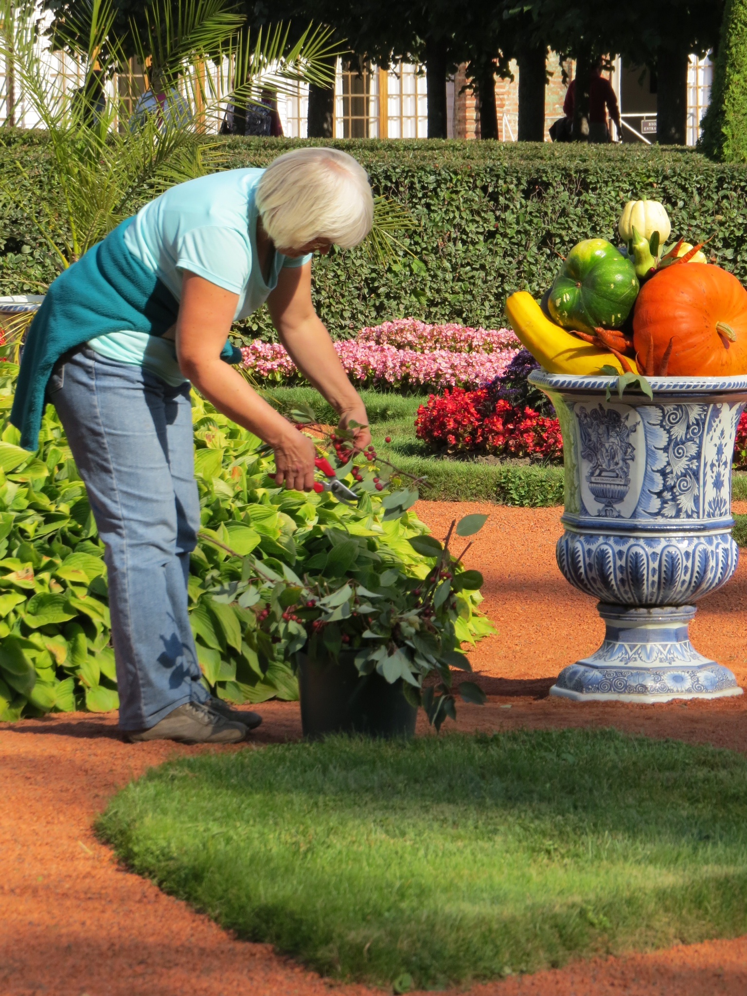 Inside, the palace sparkles in gold, silver, and every other precious stone or metal you can think of (no photos were permitted inside). The main staircase and ballroom are white but covered with gold leaf moulding in various shapes, and all of the doorframes in the palace are intricately carved and dressed in gold leaf. To the point of being gaudy. One can imagine the message of power and wealth communicated by these walls, but I thought they also communicated a sense of insecurity and an attempt to keep up (or surpass) big brother (Western Europe). Many other rooms had walls and furniture decorated with gorgeous silk, paintings on the walls, and mirrors on the ceilings. All in all Willie was quite correct, this palace exceeded even the magnificance of the The Winter Palace.