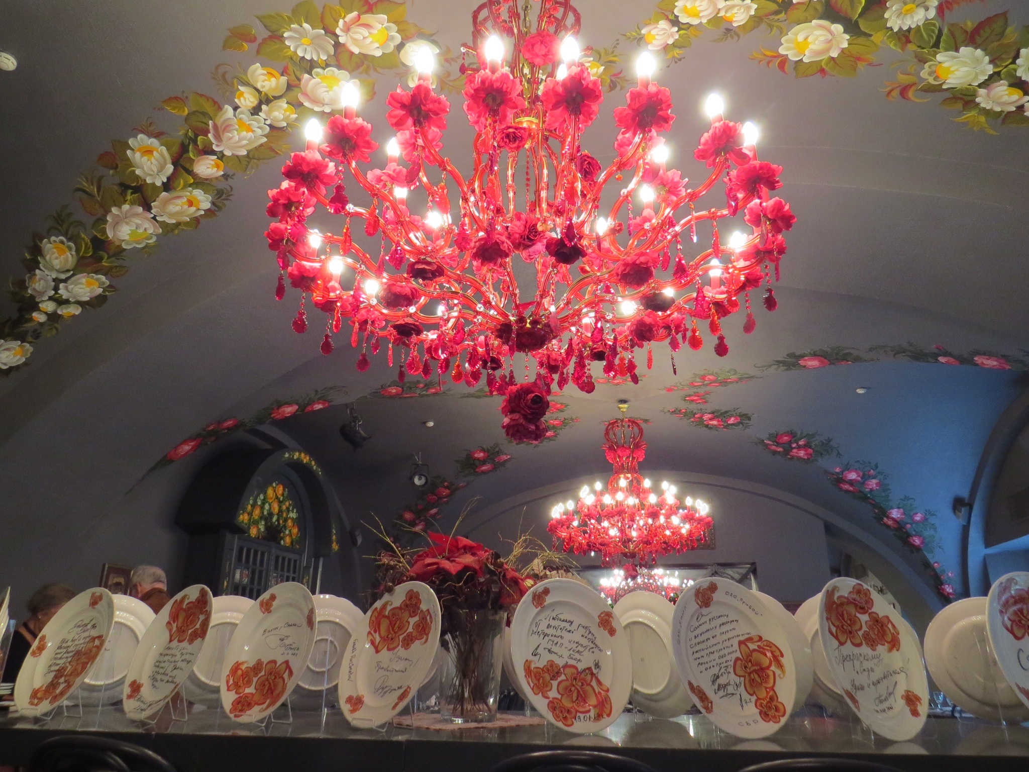 Shirley and I dressed for dinner and headed for a restaurant recommended to us near the Mariinsky Theatre. Traffic is crazy here so we didn’t have time for a full meal but the place was really fun (red chandeliers) and we will return. We crossed the street to the sumptuous Mariinsky Theatre where we caught up with Wilie to see the opera The Queen of Spades. Tchaikovsky composed the music and his brother wrote the libretto based on a Pushkin short story, and the opera is widely considered to reflect the quintessential Russian sensibility. The theatre is the most ornate and beautiful I have seen (except perhaps for the the Chagall on the Palais Garnier ceiling). There were at least 5 set changes and the largest chorus I have ever seen along with some magnificent opera stars. The music filled my soul and has lingered with me for days.