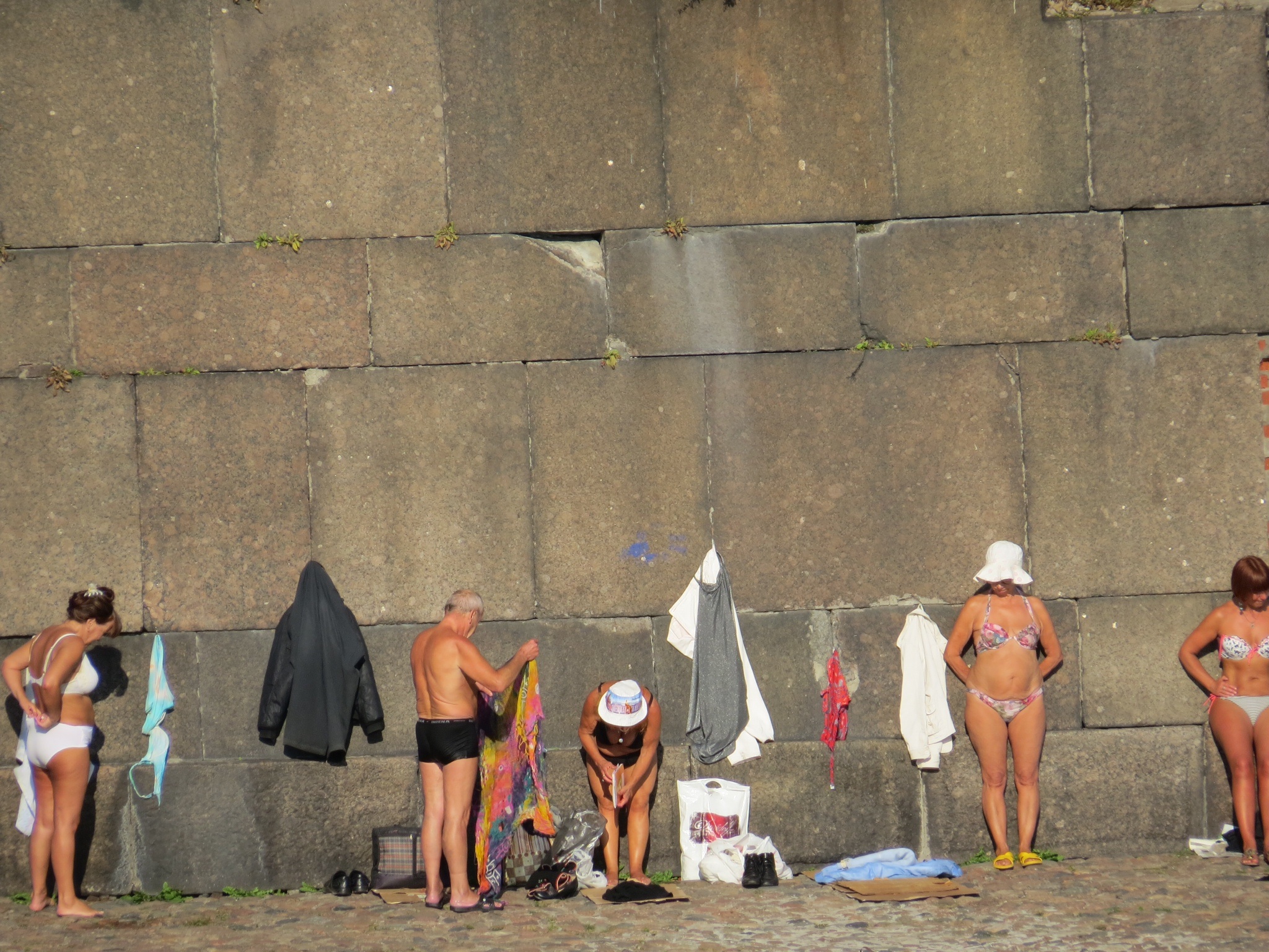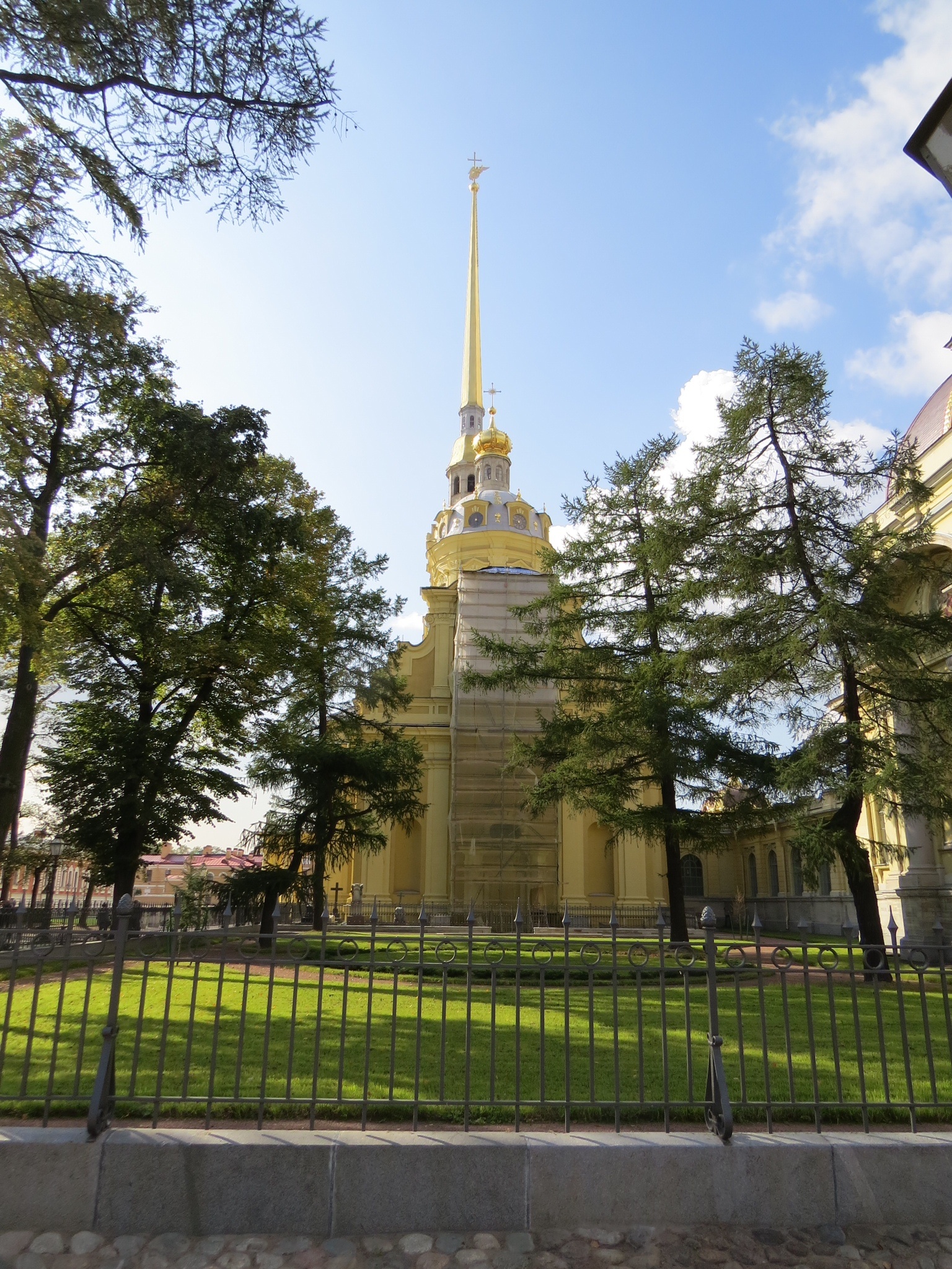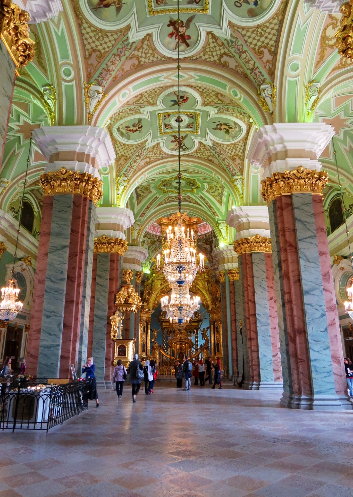 The rest of the fortress was a museum of St. Petersburg’s history and we saw one of the boats P the G built by his own hand. We visited the bastion and then climbed the fortress wall to walk along the rooftops for spectacular views of the city. It was fun, too, to see the vertical sunbathers who perch along the wall and swim in the Neva.