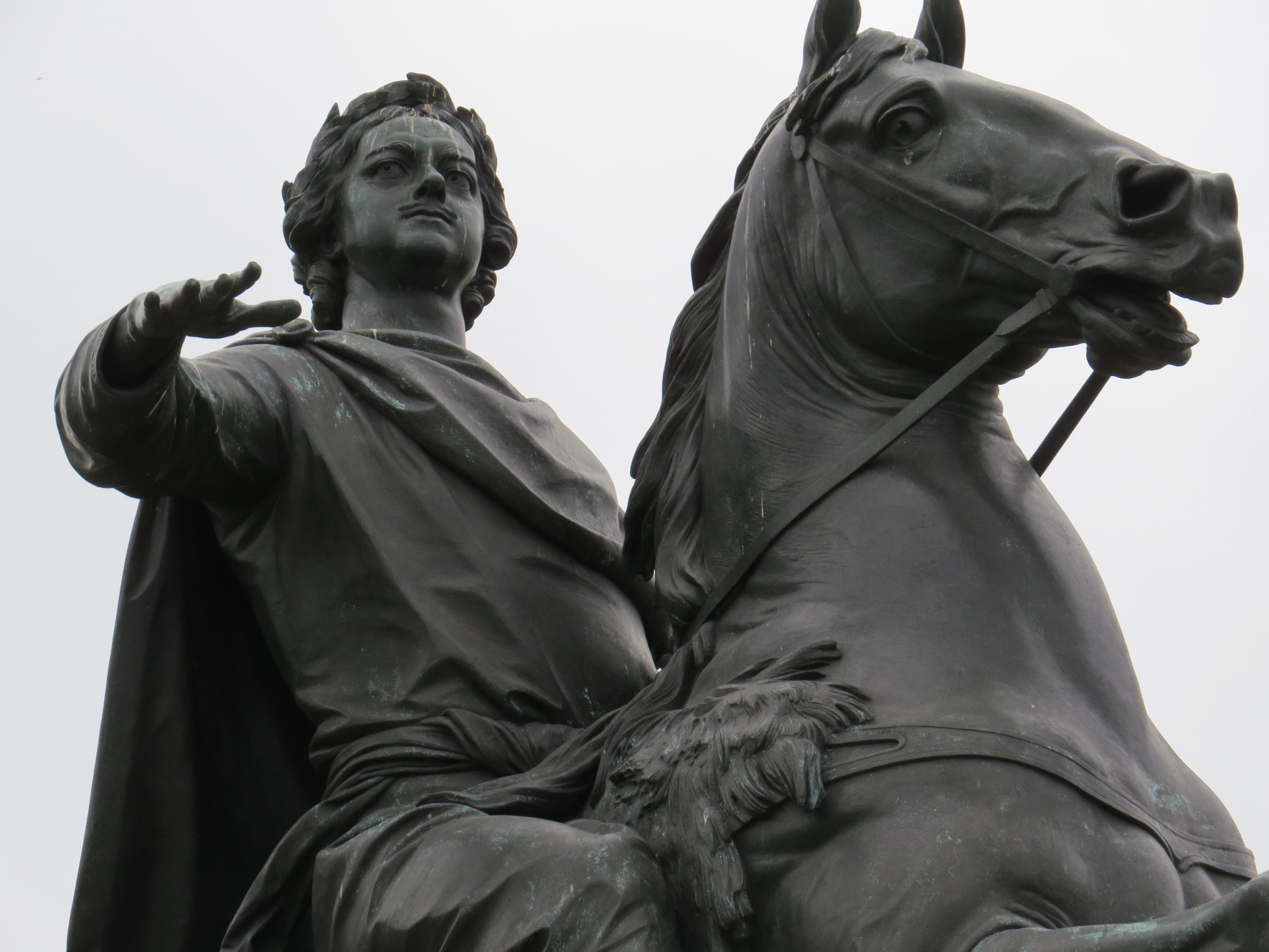 It was commissioned by Catherine the Great, perhaps to identify herself with Peter the Great and the Romanov dynasty, because she was only a relative by marriage. The Bronze Horseman depicts Peter the Great, his steed stomping on a serpent, his hand outstretched gesturing as a leader to the Peter and Paul Fortress and Europe beyond. (We noticed later in Moscow that earlier monuments of earlier Romanov Tsars held the same pose, so Catherine no doubt had that in mind.) Robert K. Massie states that “Catherine was Peter’s equal – his only equal – in vision, strength of purpose, and achievement during the centuries that Russia was ruled by tsars, emperors and empresses.”