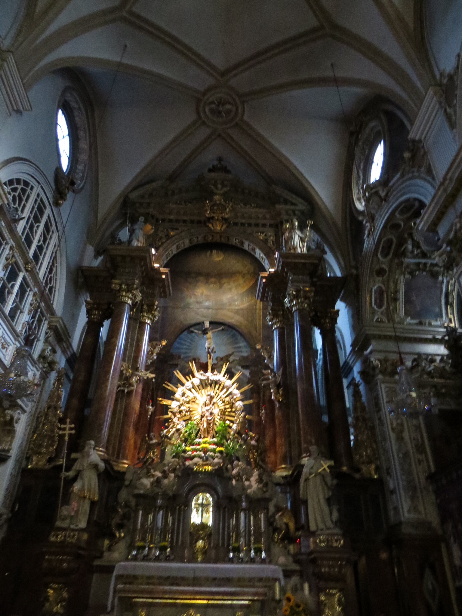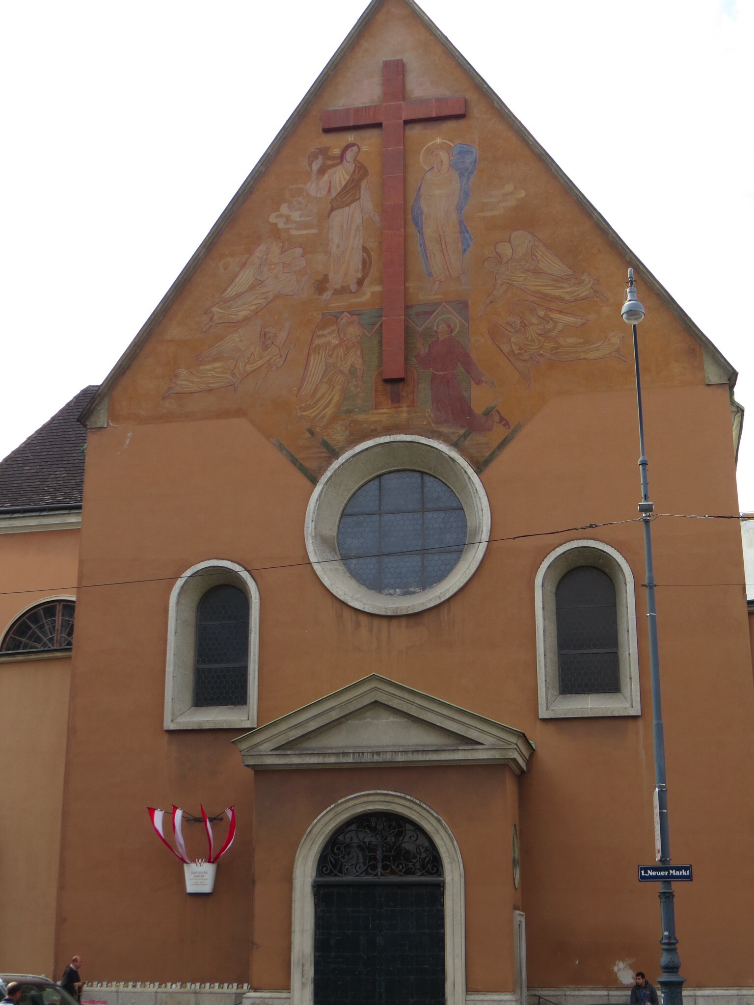 My next stop was the Kapuzinerkirche (Capuchin Church, whose monks wear brown robes with cream-coloured caps and in Italy gave cappuccino its name). I headed straight for the Imperial Crypt in the dark, quiet and slightly eerie basement. More on that coming soon. Meantime, the Capuchin Church, upstairs, is beautiful, too. Built in 1632.