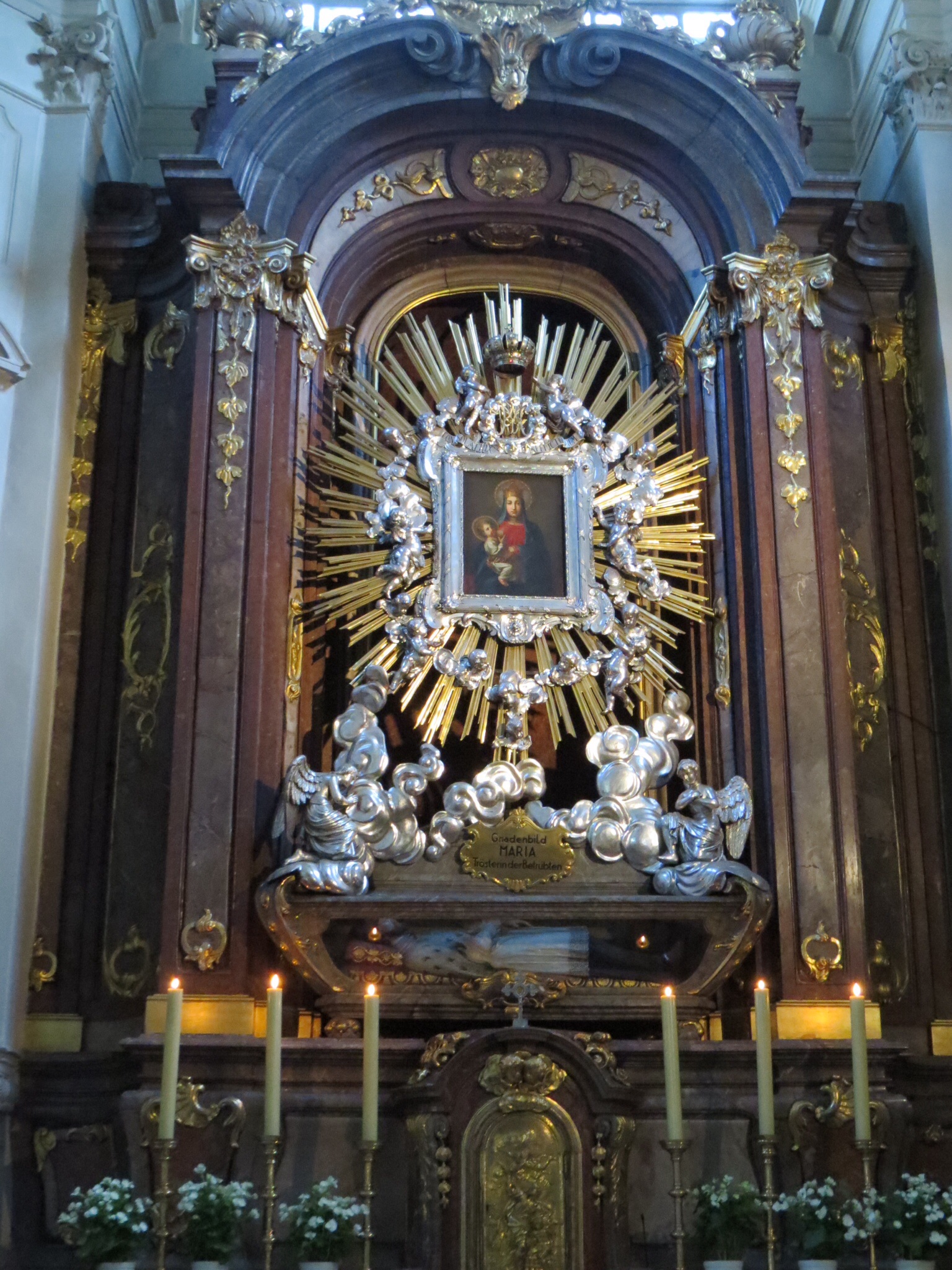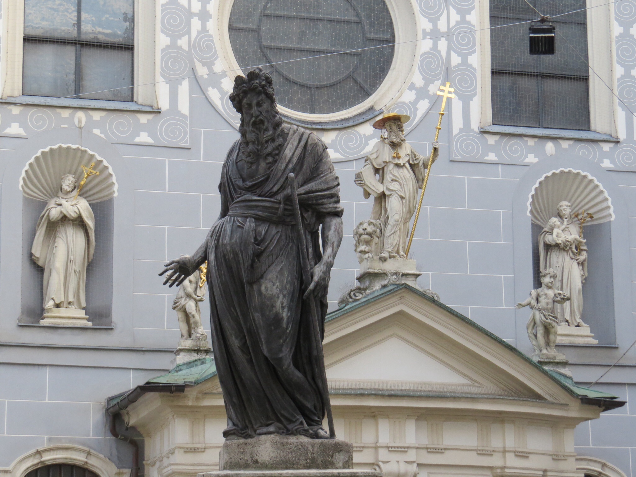 Built in 1603, Franziskanerkirche, also known as Church of St. Jerome, is unusual because its exterior is Renaissance but its interior Baroque. Outside the Church in the charming little square lives a statue of Moses. Nearby, on the Church is a statue of St. Jerome, who is depicted as a Middle Ages cardinal. About 1,000 tombs lie beneath the Church, many of which were torn open by French soldiers looking for jewelry and closed up again. A later monk tried to “tidy up,” attempting to re-assemble the bodies, but died of a fungal infection – and the crypt is now closed.