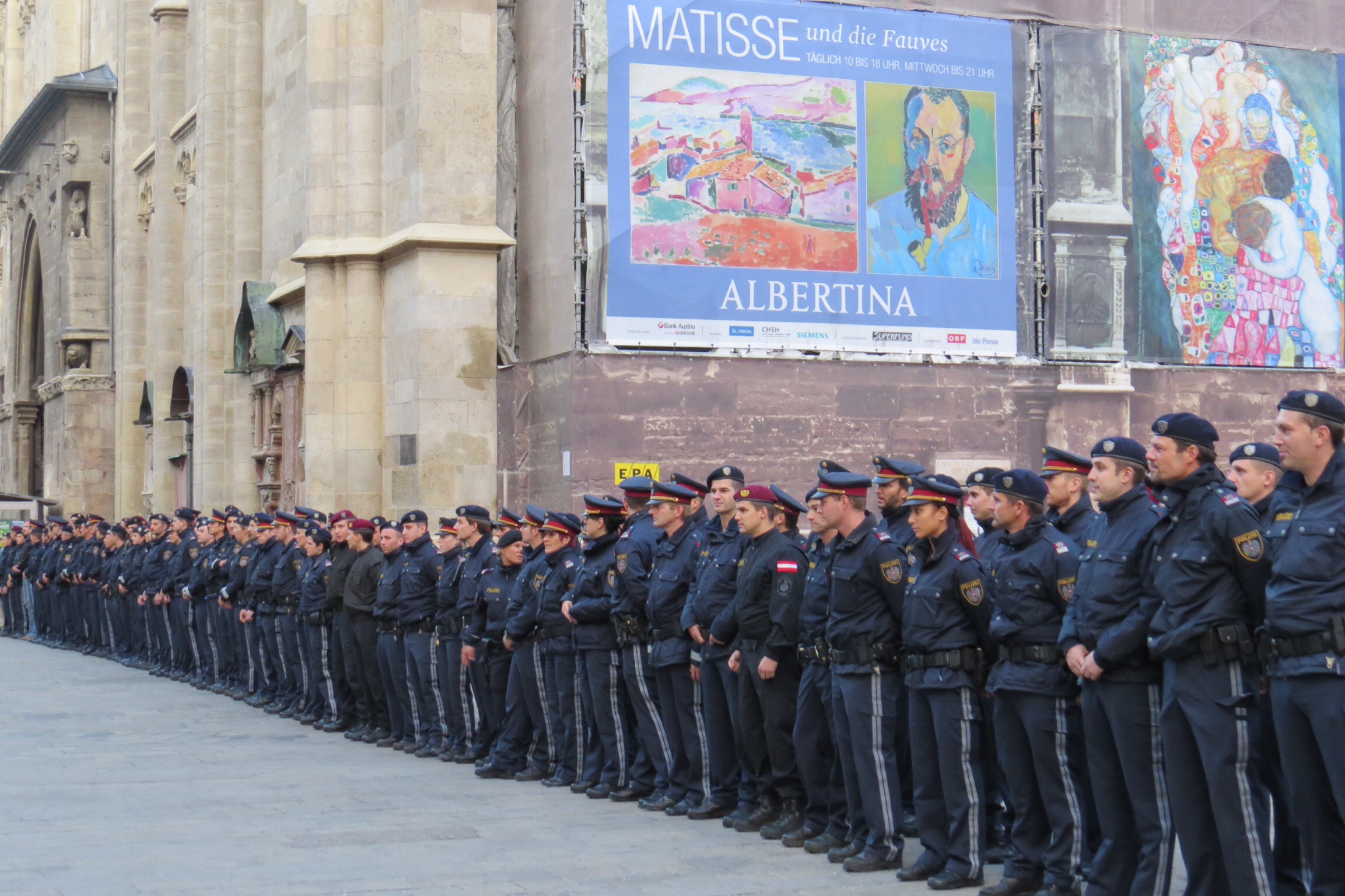 Stephensdom, or St. Stephen’s Cathedral, is the best-known landmark of Vienna and the heart of the city. Built in the Gothic style in 1359, it was intended to emphasize that Vienna was the capital of Austria. There was a police service commemorating fallen comrades this afternoon. Grotesquely, and I’m not sure why, the imperial bodies were divested of their organs before burial. The bodies lie in the tombs at the Imperial Crypt in the Kapuzinerkirche, the hearts reside in the Augustinerkirche, and the internal organs grace the Stephansdom. I didn’t see them.