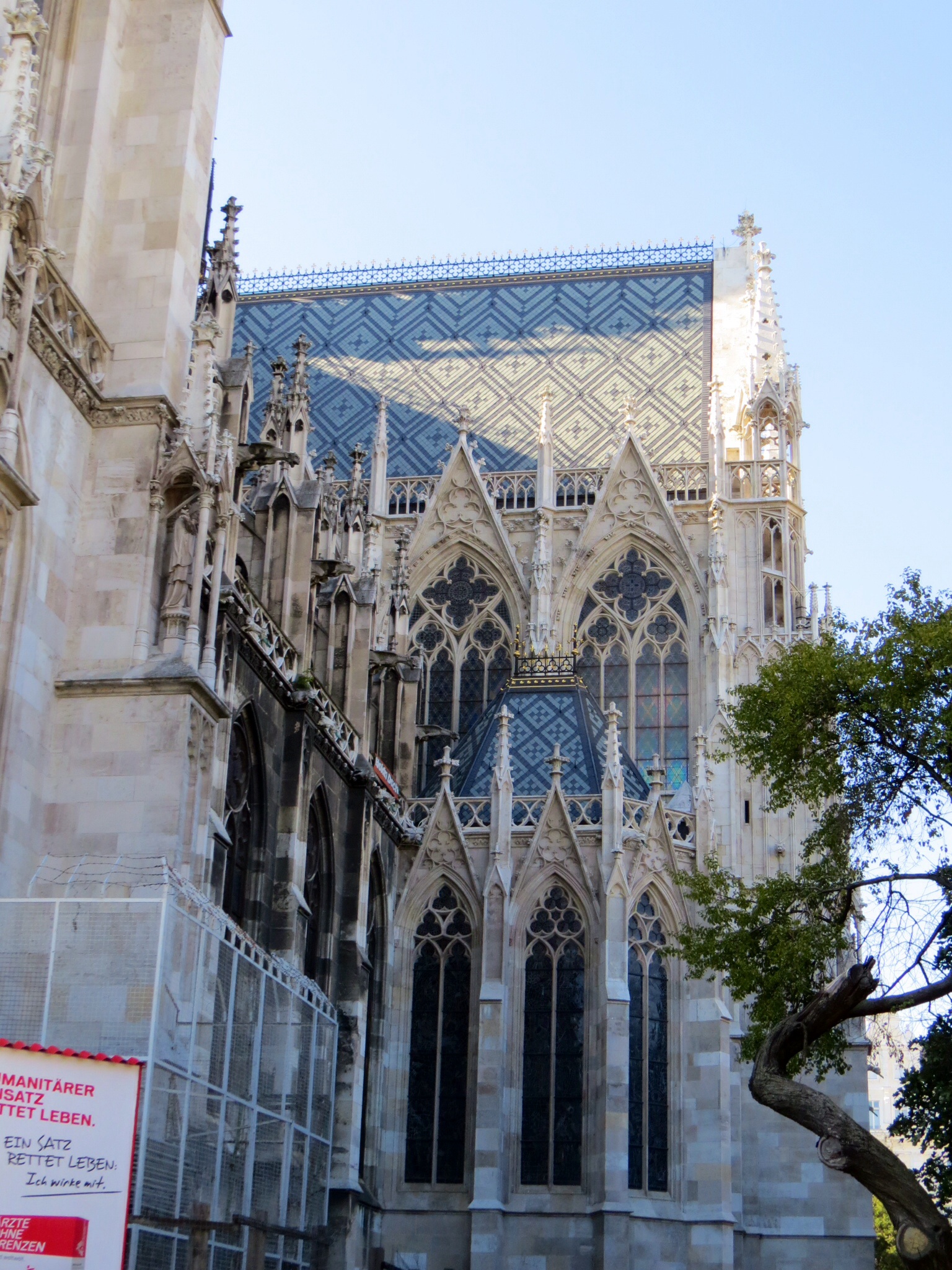 Having abandoned several museum plans for the day, I headed out to explore the city’s amazing churches. All of these churches are Catholic, and all in the centre of Vienna within a short walk of one another. These are just a smattering of the countless beautiful churches in Vienna. Russia’s onion domes have followed me here – the Russian Orthodox Church does not own the rights, apparently. In all the cities I’ve been to, I’ve enjoyed the dialogue that goes on between the spires, cranes and modern towers in the landscape.