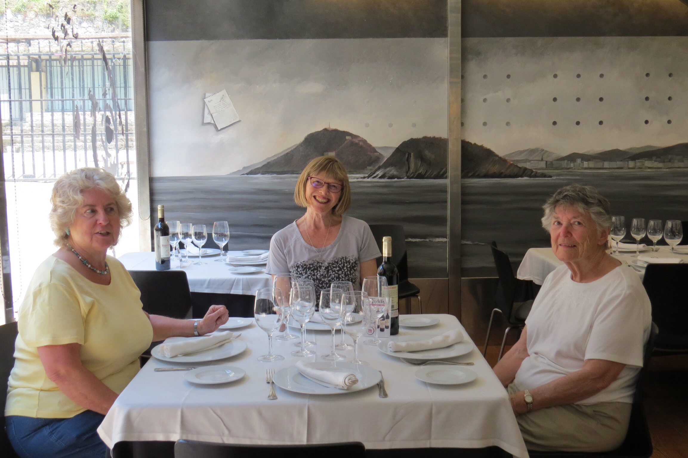 Basque country is famed for its gastronomy and San Sebastian has more Michelin starts than any country but Kyoto, Japan. Even our hotel restaurant has one Michelin star. At the annual festival of Saint Sebastian in January, townsfolk dress up as chefs and celebratory dinners are held in the best restaurants and gourmet dinner clubs. Our guide recommended a “menu” lunch at a particular restaurant and, as usual, it did not disappoint. The Spanish take advantage of their siesta, a four-hour break in the middle of the day, using at least half of it to eat the main meal of the day. The “menu” lunch consists of a starter, a main and a dessert, served with bottled water, wine and coffee. The coffee (in my case cafe con leche) is taken as a fourth course following dessert. A meal like this costs 10 to 15 euros.