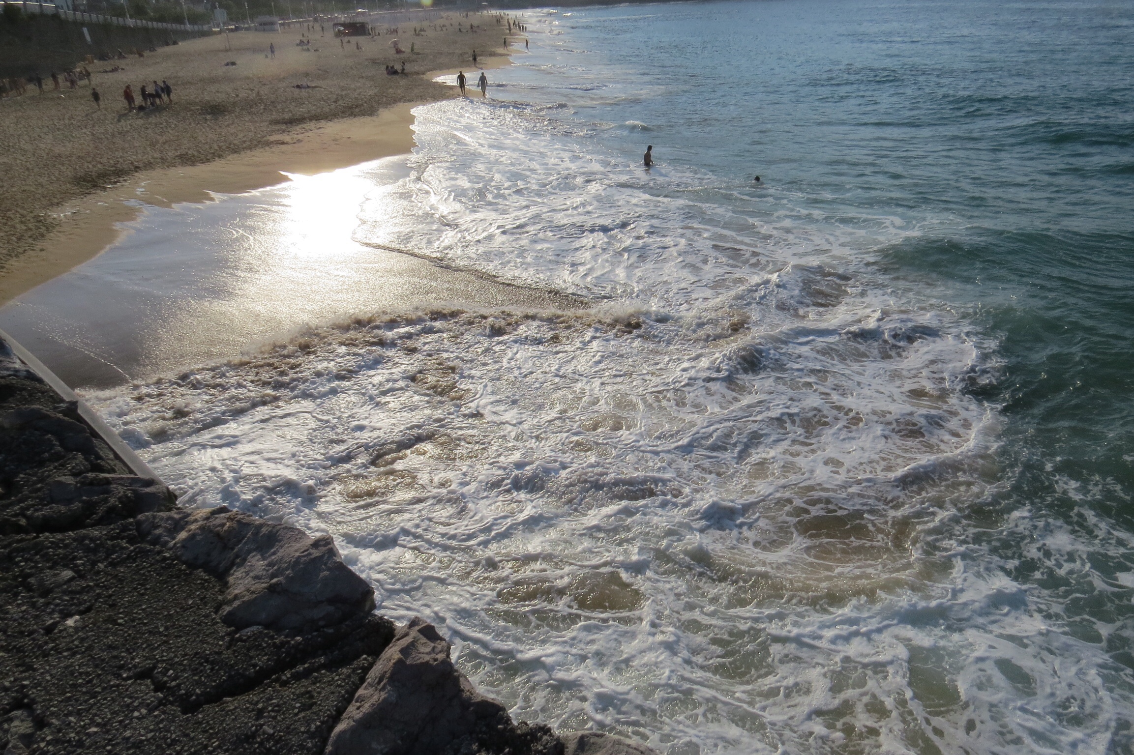 After this leisurely lunch we wandered the shops in the old town and meandered back toward our hotel via the beach, where we went into the Atlantic up to our knees. The water at the shoreline was warm and the sand soft. We stopped at one of the patios along the promenade for a refreshing beer.