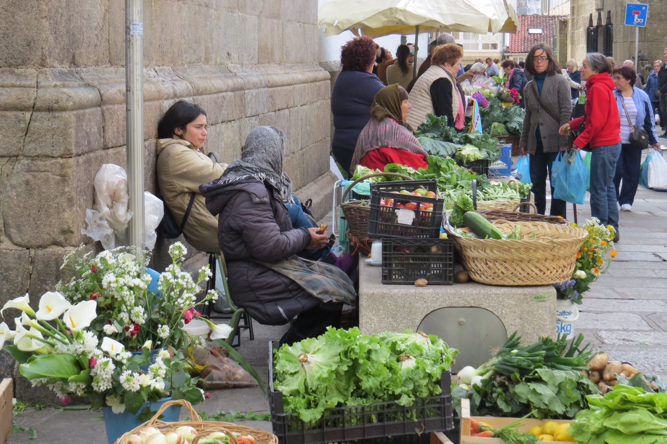After the Friday evening service followed a delicious dinner at our stone hotel of croquettes, grilled prawns, grilled squid and pinwheel salmon with, appropriately, a scallop in its centre. (The primero of scrambled eggs filled with literally hundreds of baby eels, the equivalent to me of a plate of one million tiny snakes, was my worst nightmare, and I could not muster the bravado to even sample them.)