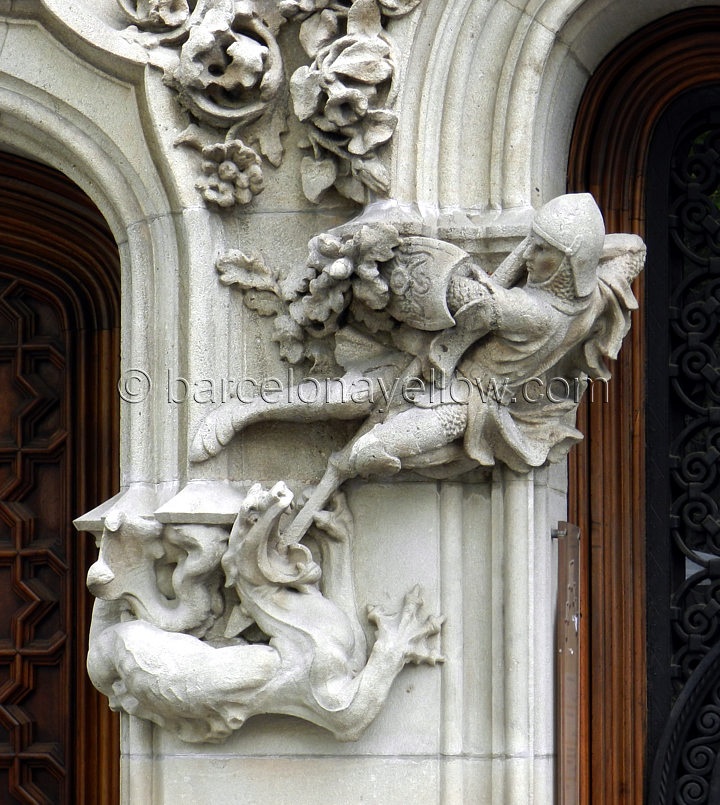 You can see Saint George, the dragon slayer, in many places around Barcelona. Like here on the facade of Modernist house Casa Amatller on Passeig de Gracia. Sant Jordi is the legend that inspired the giving of roses and he is the patron saint of Catalonia.