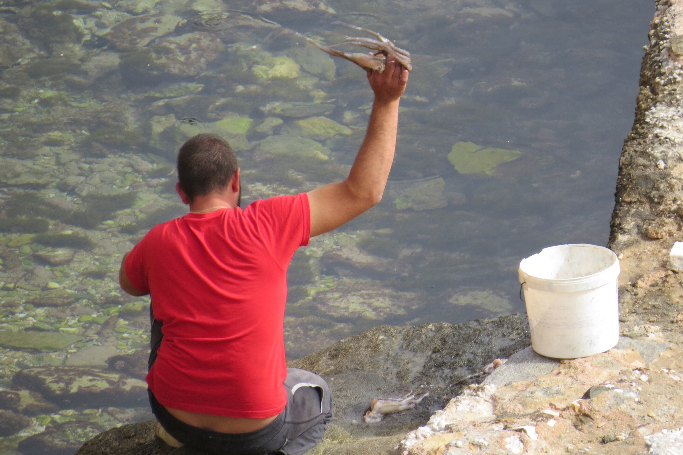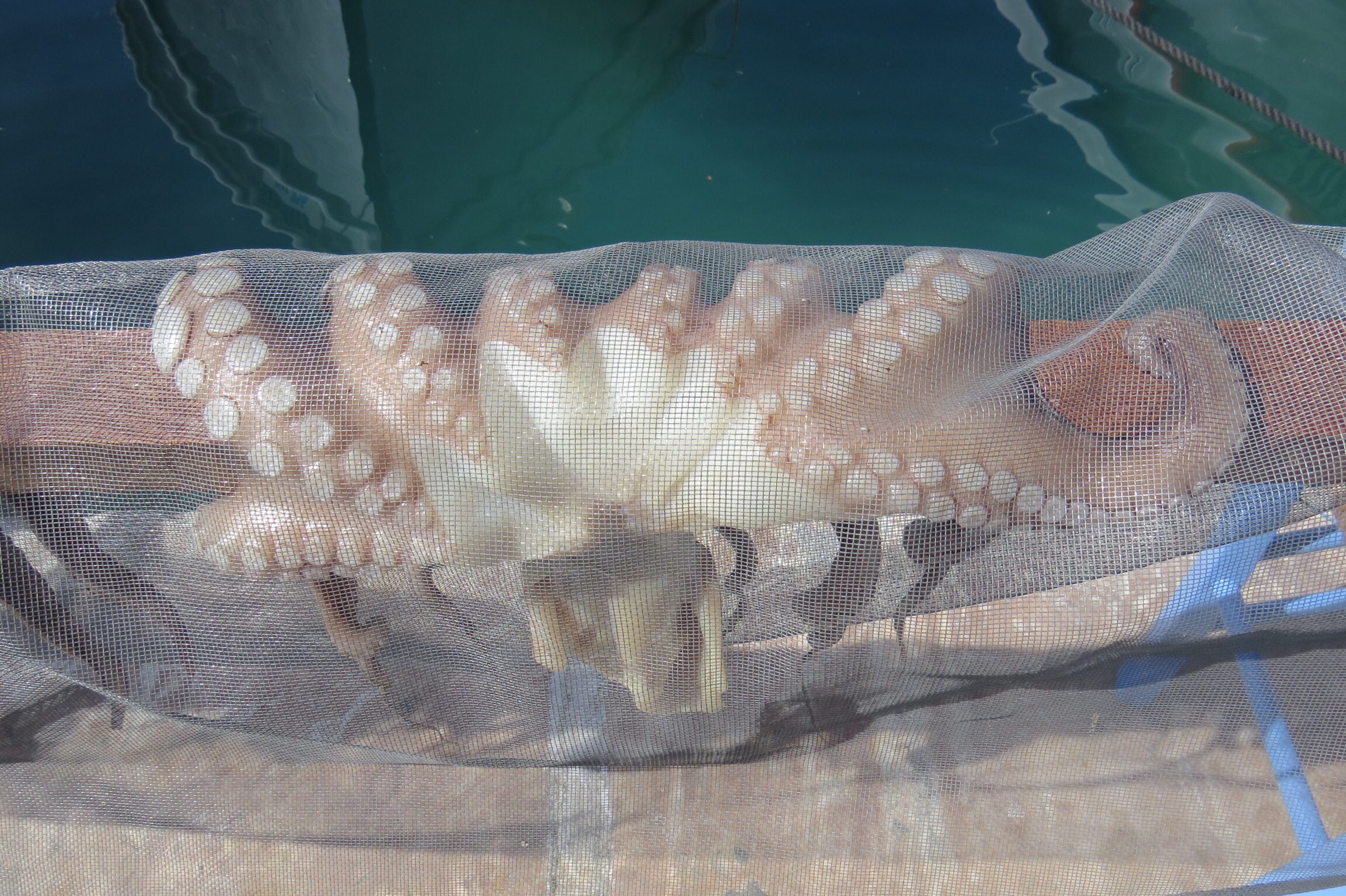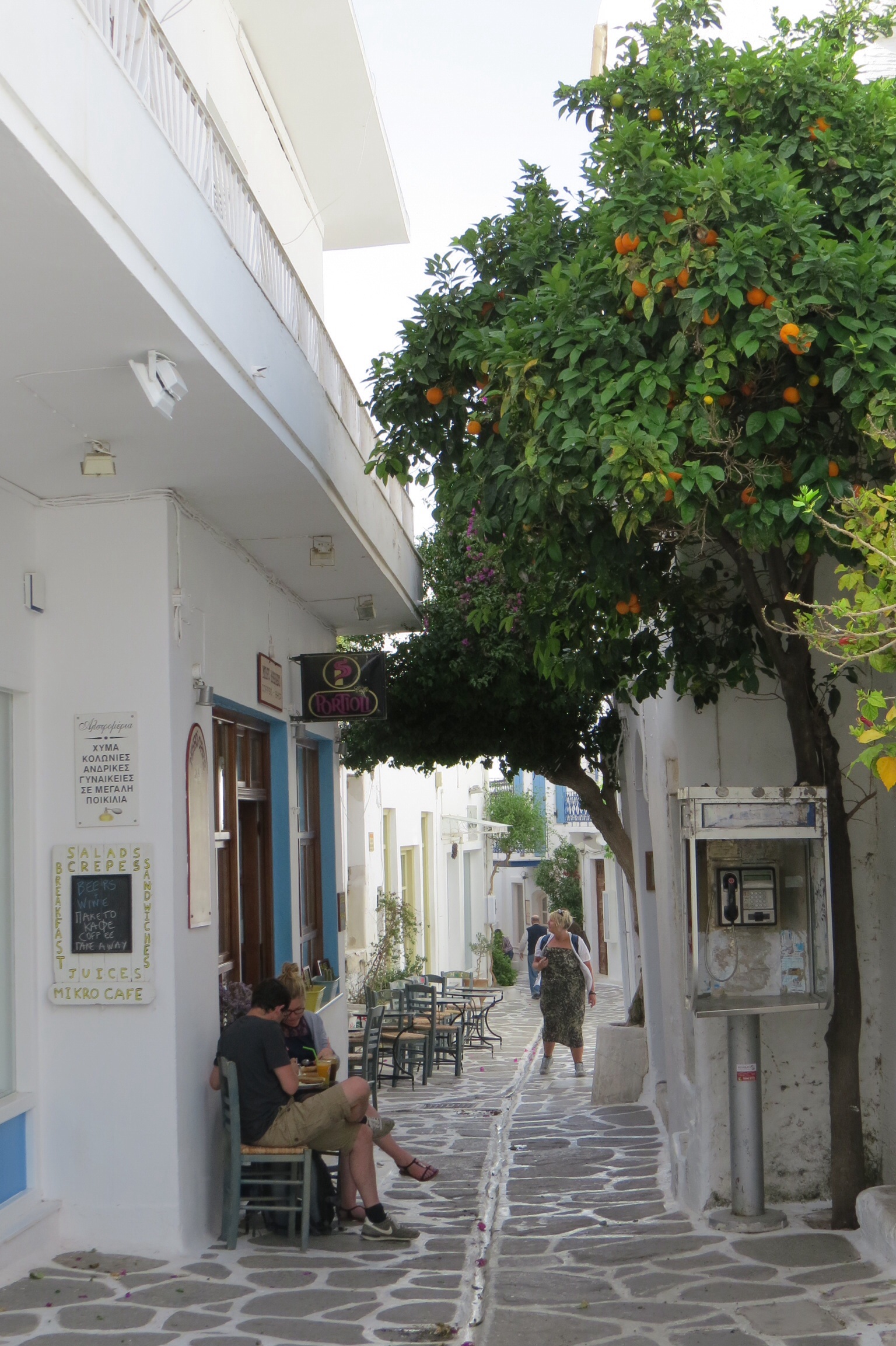 The Pandrossos Hotel was beautifully situated for throwing open the azure shutters to my balcony in the morning, to watch muscled greek men tenderizing octopus on the rocks below. Temperatures ranged from balmy to hot, moderated by warm breezes. Lemons and oranges dangle voluptuously from glossy green shrubs.