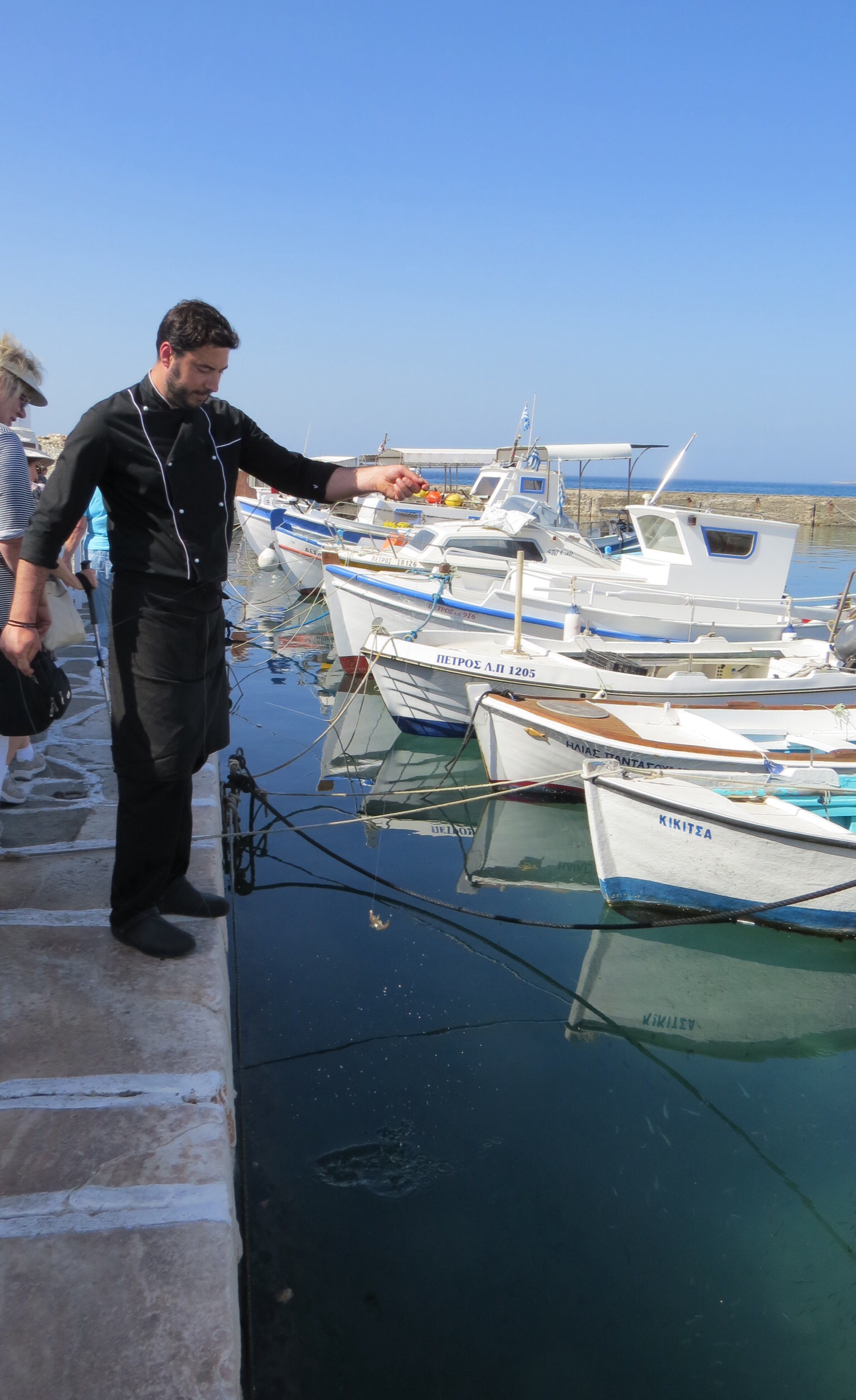 Our tour of the Island took us to a seaside village for a fabulous lunch and around Paros to the pretty port town of Naousa, where restaurants were preparing luscious meals for much later in the day (Greeks go for dinner at about 11:00 p.m. They like to take things slow, until they get behind the wheel, that is, then they drive like there is no tomorrow.)