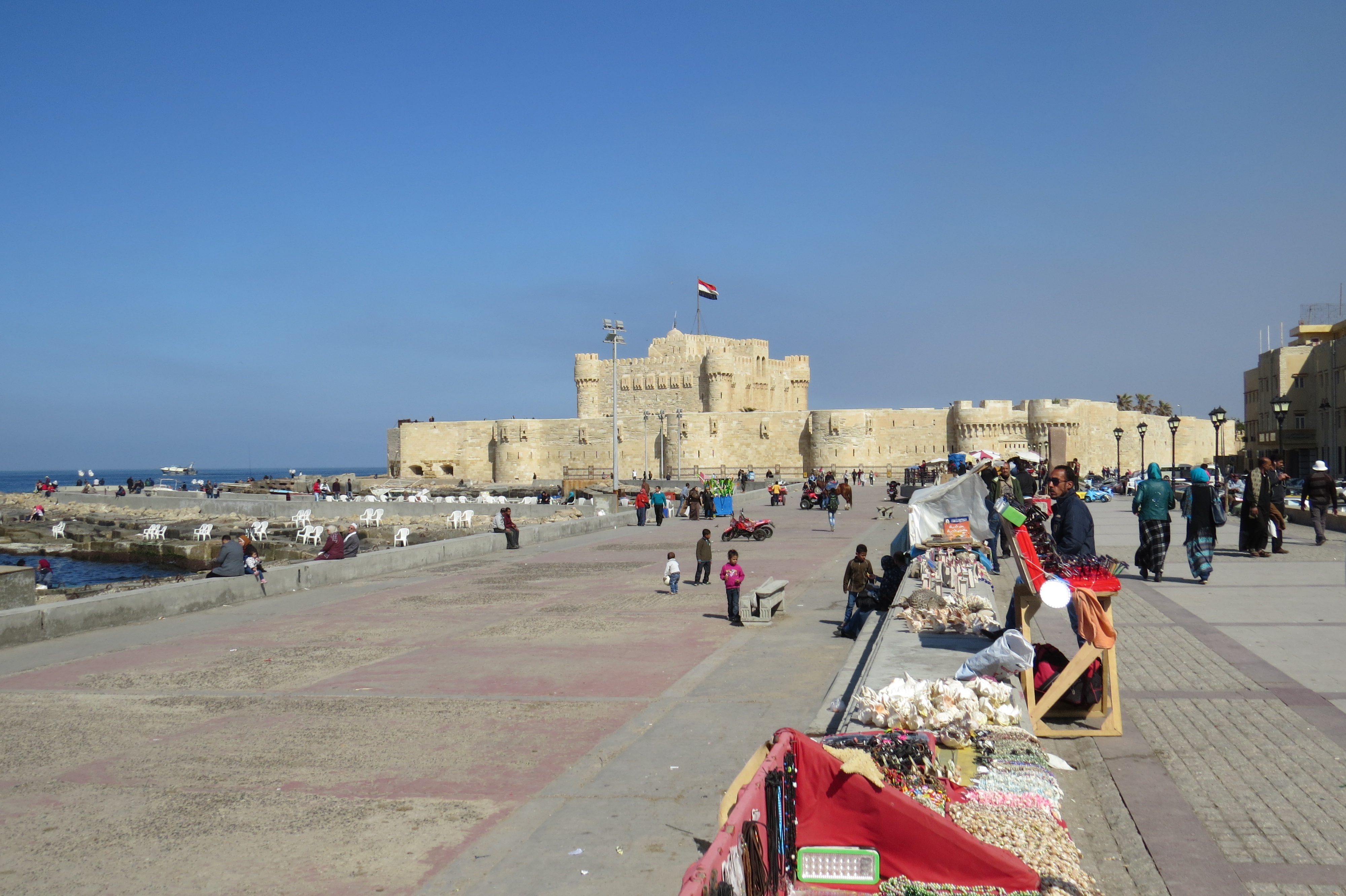 Arriving in Alexandria felt like coming home – sea air, fresh breezes and foam-crested waves. Alexandria is the northernmost city in Egypt on the Mediterranean and has a much more European (and west coast) feel than Cairo. It is much cleaner and “Le Corniche” (“the Crescent”) is a several-kilometres-long promenade along the beach.