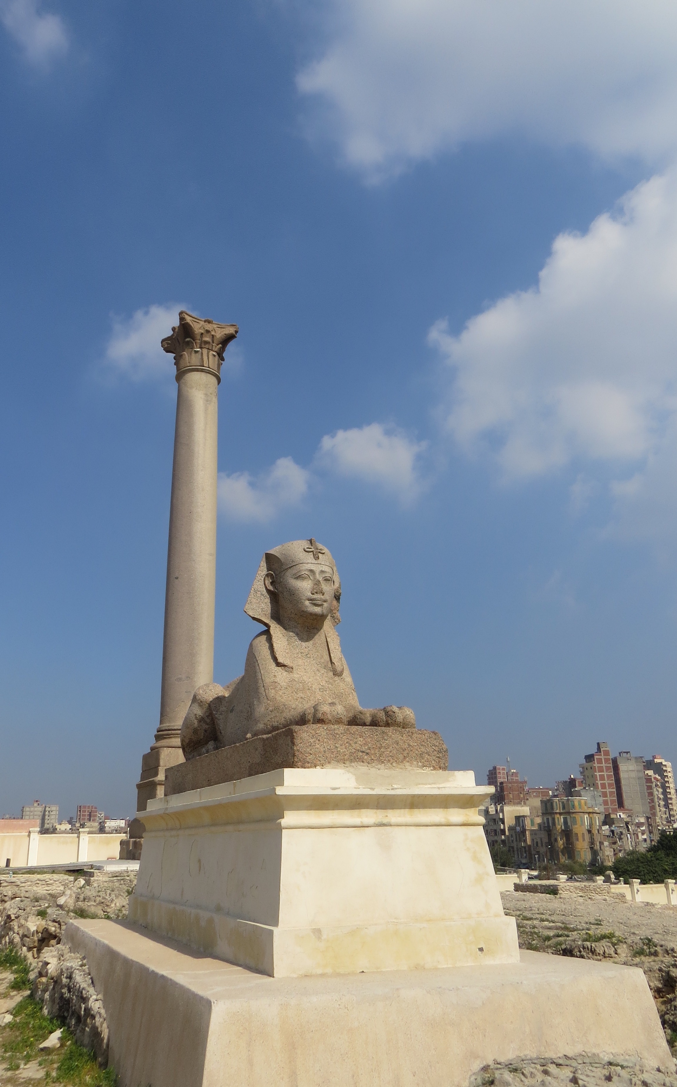 We visited several sites from the Greco-Roman period, and all were enhanced with Egyptian artifacts. Pompey’s Pillar is the largest triumphal column outside of Rome and Constantinople and was carved from a single piece of stone. The pillar was surrounded by Egyptian relics including a symbol of eternity which looked like a rose of stone. We visited an ossuary and a life-sized image of the Apis Bull.