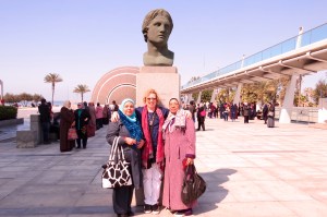 Our most important visit today was to the Alexandria Library. I was excited to see it, it was one of the attractions of Egypt for me. In its ancient day, the Alexandria library was famous; it was the most important collection in the world, with over 400,000 scrolls amassed of the most influential literature of history at that time. Sadly, that library burned down. It isn’t clear whether it was Julius Caesar, the Coptic Christians or the invading Muslims who are responsible for the destruction of the library and its contents. To me, it is fantastic that Egypt has honoured this important history with a modern library on its former site. When we visited, a large group of women who are educators was holding a conference. Imagine how significant that is in Egypt and how honoured I was when two of them wanted a photograph with me.