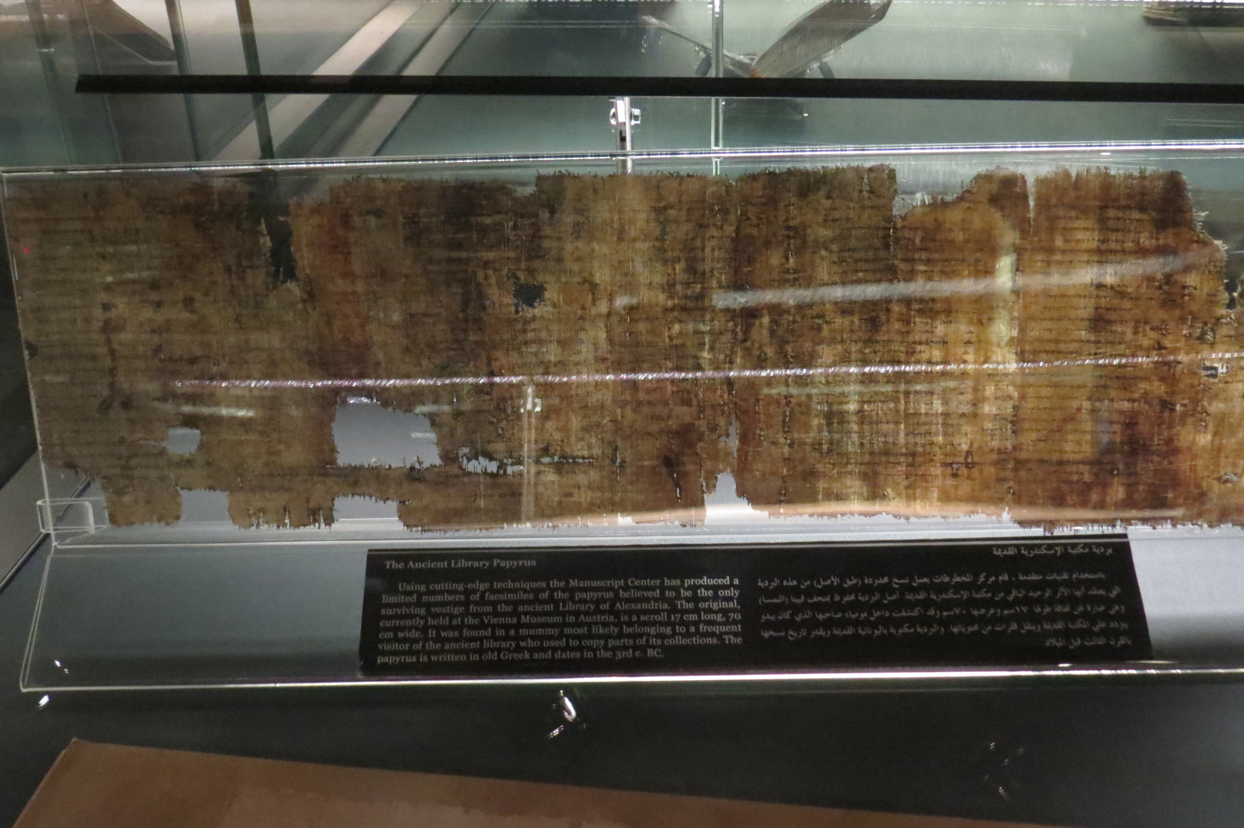 There are several museums in the interior of the library, and Chris Mundigler recommended I visit the Museum of Manuscripts, which naturally didn’t disappoint. There was a reproduction of the Rosetta Stone, the key to unlocking the language of the hieroglyphs, the original of which is currently trapped in the British Museum (it’s my blog).
