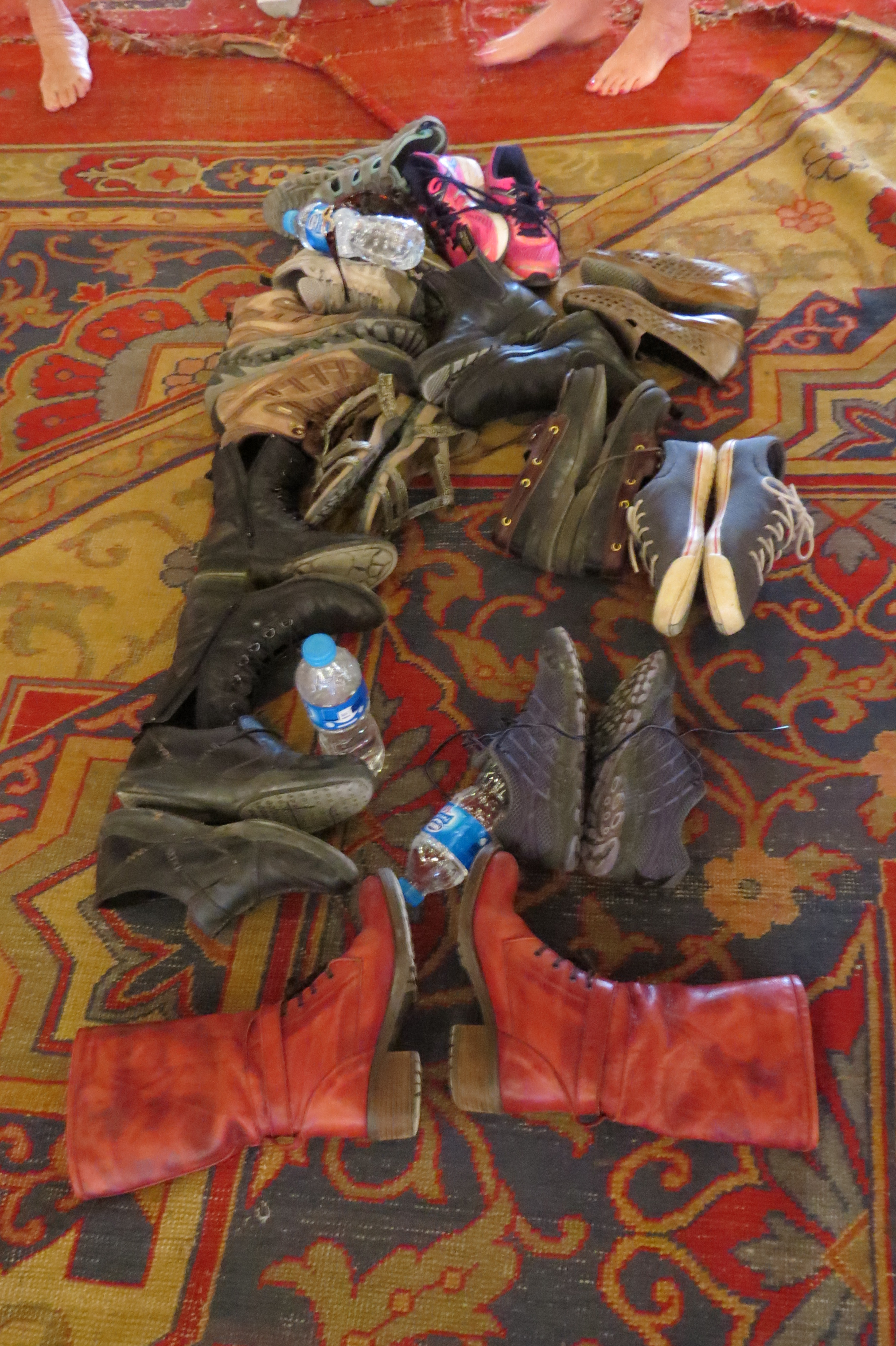 Blue domes rose above the huge space. As we entered, we laid our shoes on one of the rich red rugs covering the inner surface of the mosque.