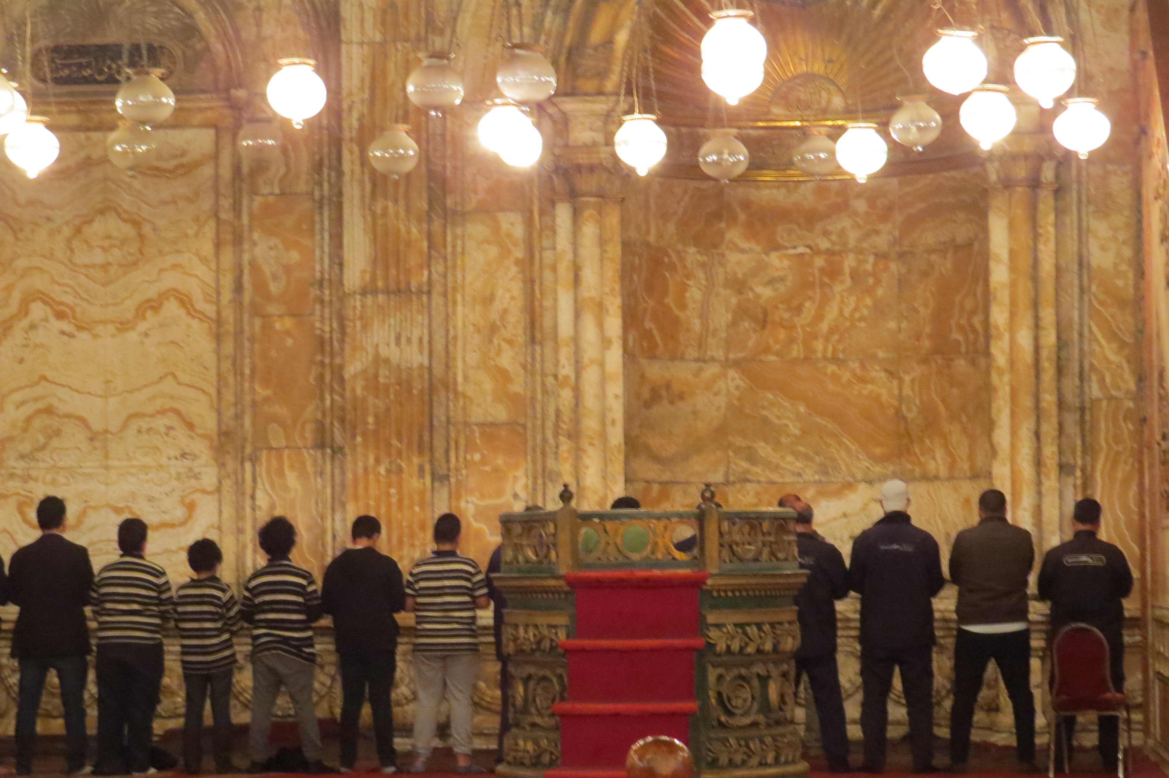Although the Mosque is treated as a museum, it remains a house of worship with an Imam and students of the faith. In the centre of the courtyard is a fountain where the faithful ritually cleanse themselves before entering (“Wudu”). We arrived as the call to prayer began. We women put on our scarves and we all took off our shoes and carried them with us.