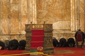 We saw a few men and boys run to the sanctuary to pray (mostly tourists visiting the site). A leader at the front gave the word for them to stand, bend, kneel, and drop their foreheads to the ground in supplication. Some men wear bruises on the foreheads as a symbol of their devotion to Allah. Sunni Muslims follow the Quran, of course, which incorporates Christ, Moses and others as prophets in their religion.