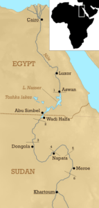 Nubia is a region along the Nile river located in what is today northern Sudan and southern Egypt. It was the seat of one of the earliest civilizations of ancient Africa, with a history that can be traced from at least 2000 BC. Nubians also have an early archeological history and at some point in ancient times largely assimilated with Egyptians. Many of the artifacts in the Egyptian Museum in Cairo are Nubian. They have two languages, one of which was used as a secret code by Egyptians during the 1973 Egypt-Israeli war. Some Nubians are still gathered in villages along the Nile in upper Egypt, after a forced migration due to the building of the Aswan dam. Tonite we were headed for a village on the west bank of the Nile.