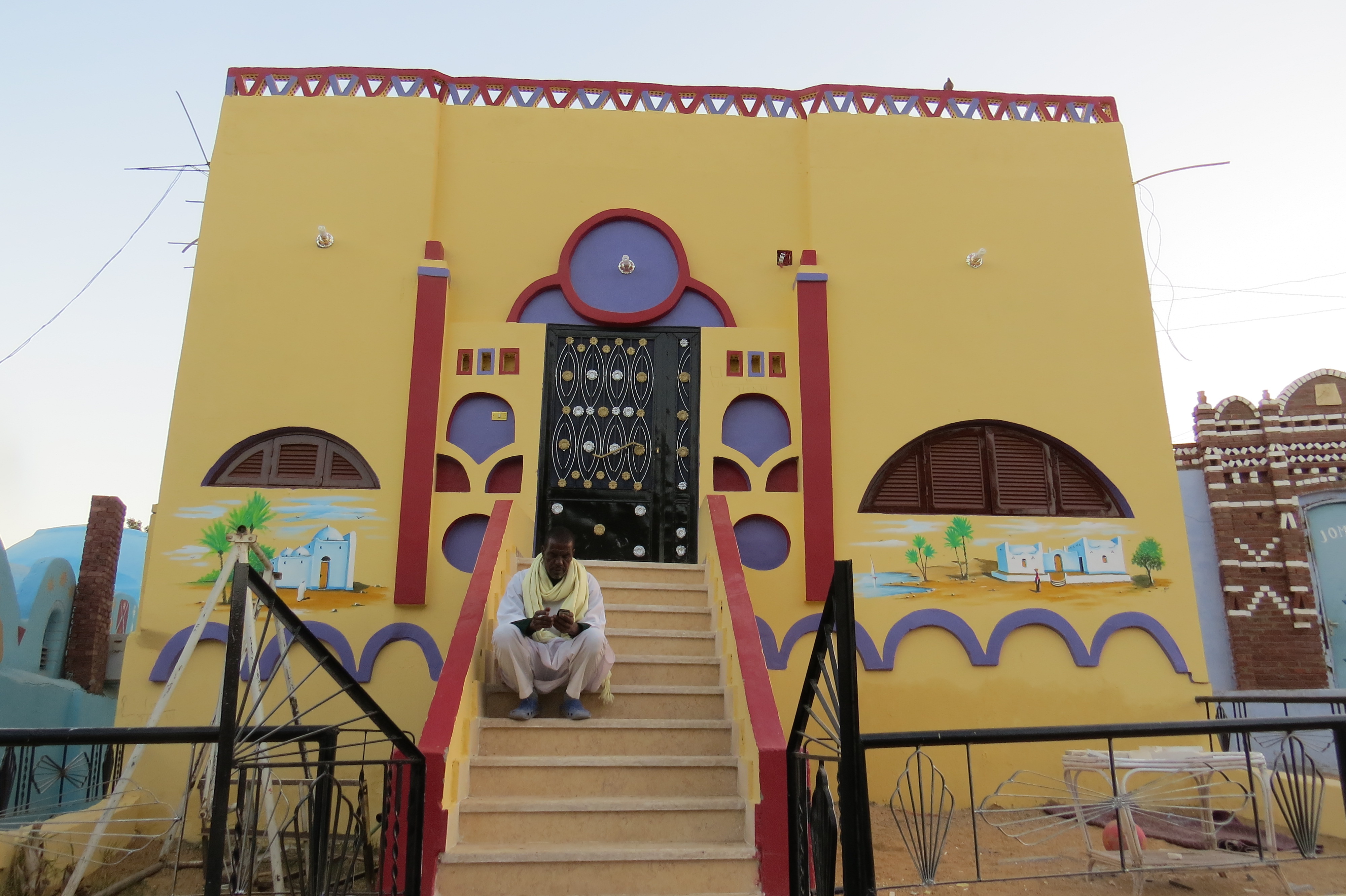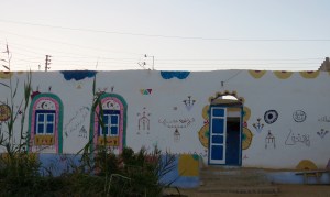 We pulled up to the Nubian village, climbed ashore and noticed a ’60’s vibe. We passed some colourful houses and the local school.