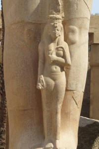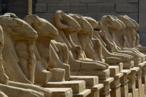 An avenue of sphinxes leads to the pylon. These sphinxes are ram-headed, symbolizing the god Amun and a small effigy of Ramesses II, in the form of Osiris, stands between their front paws. They once would have joined the avenue of Sphinxes from Karnak to Luxor Temple.