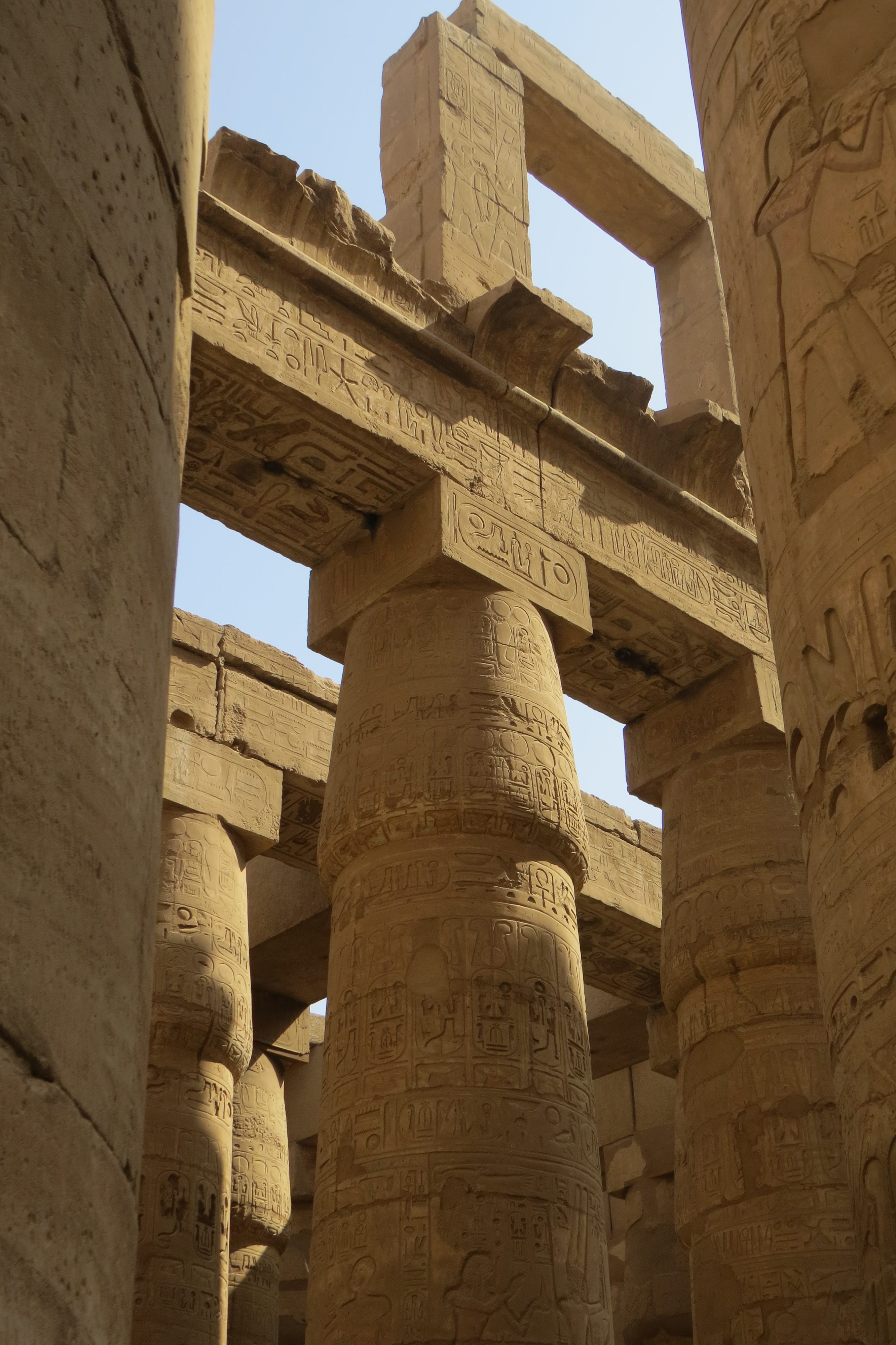 The Great Hypostyle Hall was designed by Queen Hatshepsut but constructed by Seti I in around 1279 BCE. There are 134 columns in 16 rows. The architraves on top of these columns are estimated to weigh 70 tons. Ramses II, who also built Abu Simbel, completed the wall decorations on the southern side of the Hall and completed the construction of Karnak Temple.
