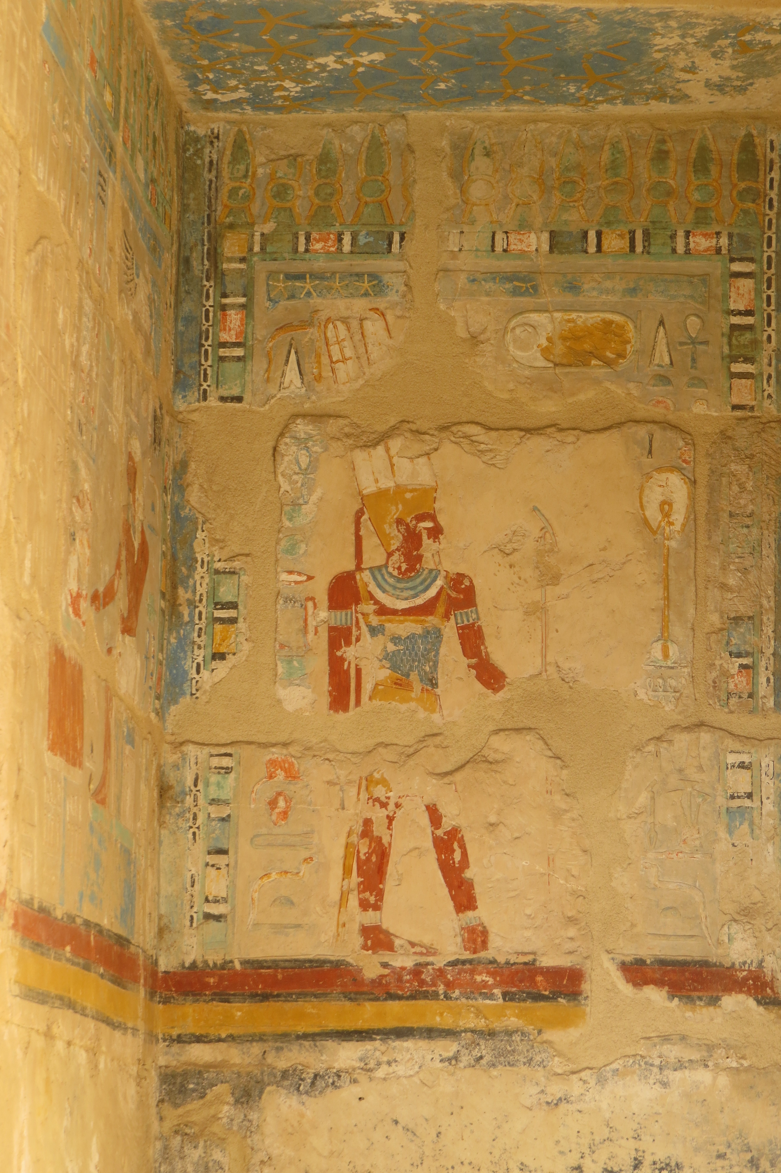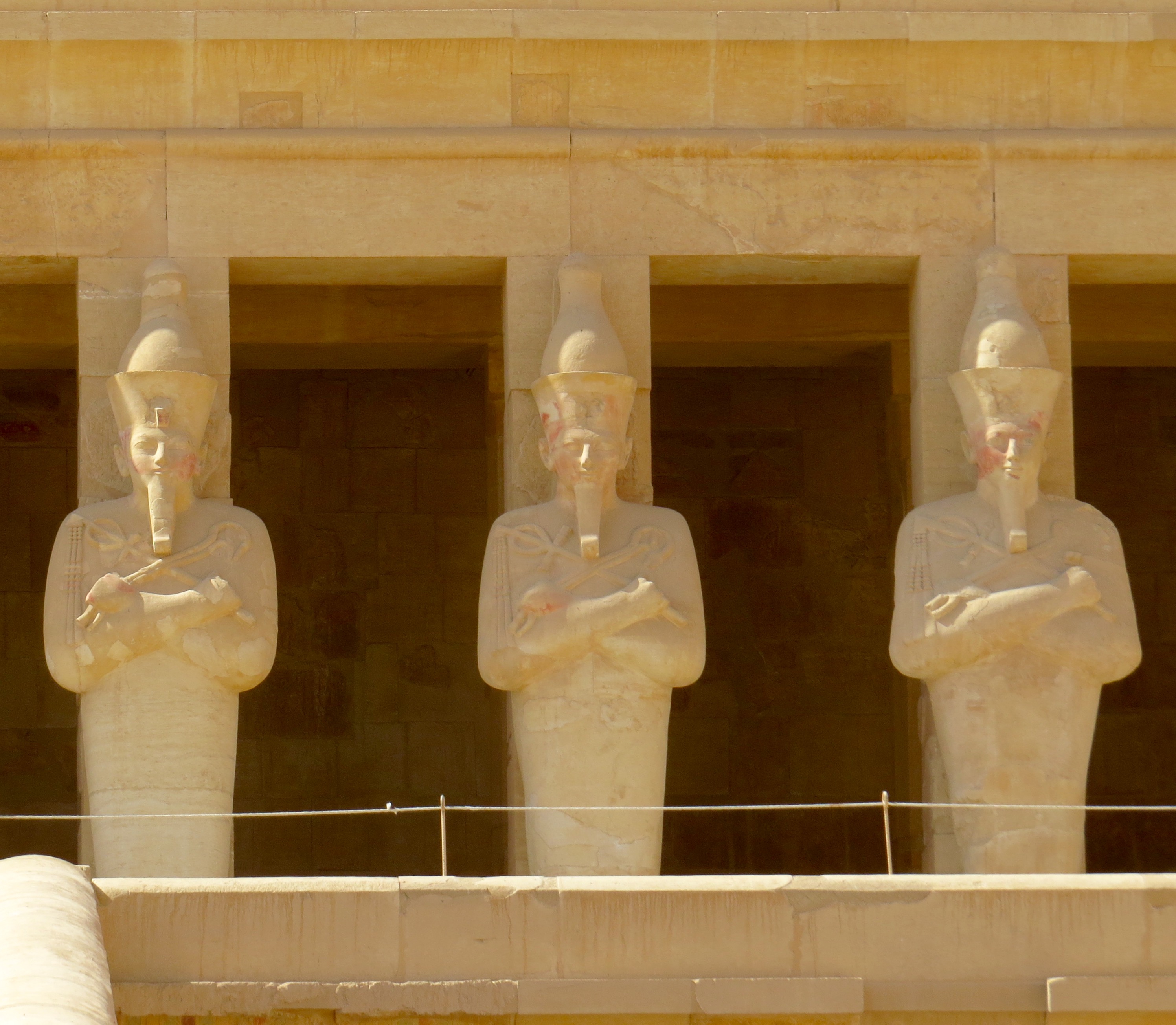 The terraced temple of Queen Hatshepsut (built c. 1470 bce), was uncovered (1894–96) beneath monastery ruins and subsequently underwent partial restoration. A fuller restoration of the third terrace, sanctuary was started in 1968 by a Polish archaeological mission. The temple was built with statuary, reliefs and inscriptions with her burial chamber carved out of the cliffs which form the back of the building.