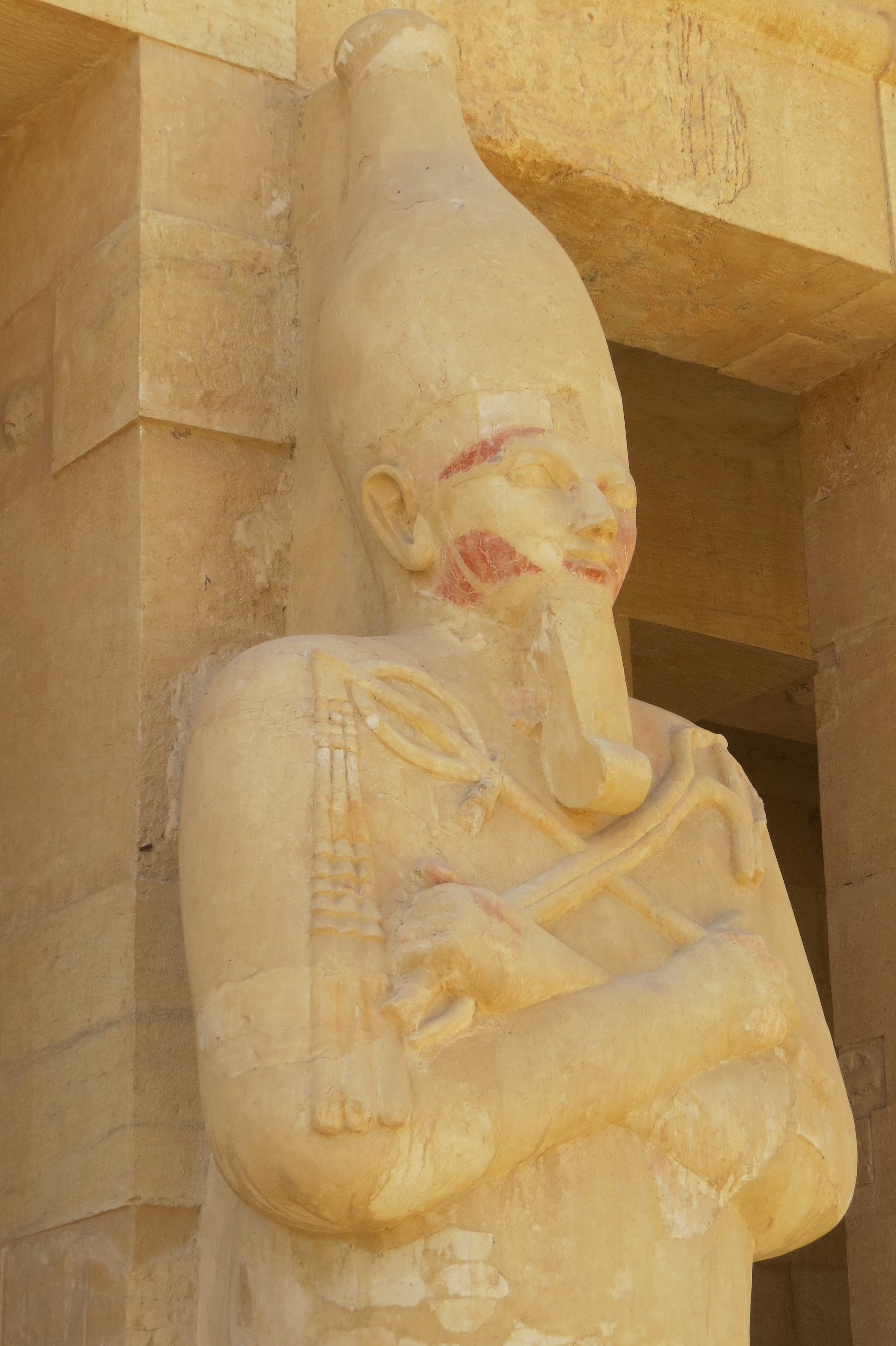 Pharaoh Hatshepsut is considered by most to be the greatest Pharaoh of all time. The undisputed success of Hatshepsut’s peaceful 22-year reign from 1478 – 1456 BCE, is all the more impressive because the Pharoah was a woman. It is no accident that the Valley of the Kings is nearby; successive Pharaohs sought to associate their legacies with hers by spending eternity in tombs in close proximity to her magnificent temple at Deir el-Bahri.