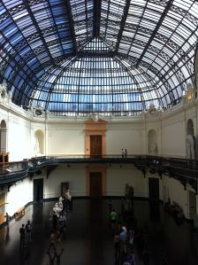 On our first day here today we were meant to rest after a long flight, but we opted to defer rest in favour of a free day in Santiago. We headed out to the Museo Nacional de Bellas Artes about a block from our lovely, aptly situated boutique hotel. There were several interesting exhibits and some classical landscapes and portraits by Chilean artists, but the building itself is an architectural beauty and marvel considering Chile is the most seismic country on Earth.